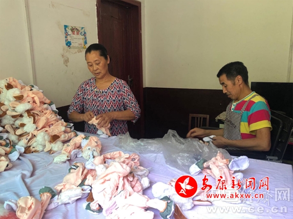 為了讓那些不能或不愿外出務(wù)工的農(nóng)戶增收有門路,陜西省紫陽縣毛壩鎮(zhèn)2018年9月從江蘇省揚州市引進迪鑫玩具工廠,從事毛絨玩具生產(chǎn)加工。