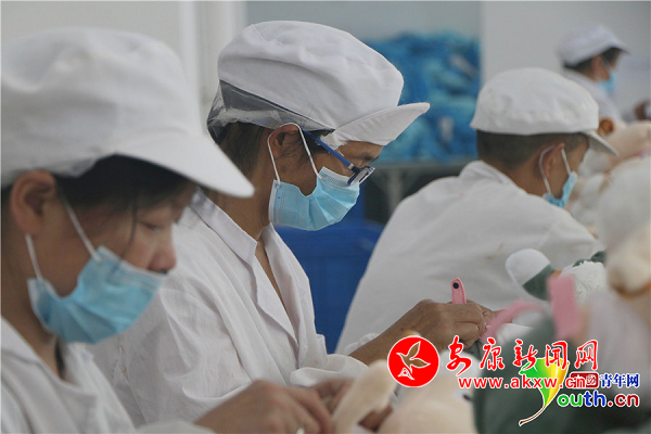 玩具廠還吸納了11名男性村民投身毛絨玩具生產(chǎn)加工。中國(guó)青年網(wǎng)記者 張博 攝