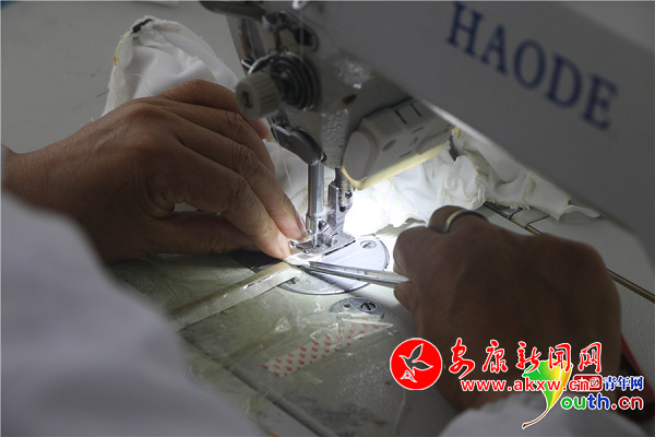 縫紉車間工作場(chǎng)景。中國(guó)青年網(wǎng)記者 張博 攝