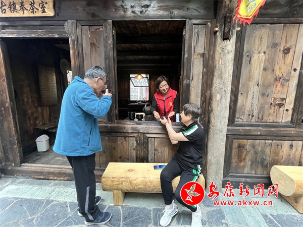 “三月的那個(gè)三來,上茶那個(gè)山呀......”行走在古鎮(zhèn)老街,一首悠揚(yáng)悅耳的歌聲撲面而來,走進(jìn)古鎮(zhèn)奉茶室,侯大姐滿懷激情,聲音高亢地為游客們演唱著紫陽民歌《三月三上茶山》,這已經(jīng)是她今天早上接待的第三批游客了,但絲毫看不出她臉上的倦怠。街道社區(qū)居民侯服琴,秉著對民歌文化和社區(qū)工作的熱愛,長期致力于古鎮(zhèn)奉茶室義務(wù)接待工作,為游客演唱傳統(tǒng)紫陽民歌。“現(xiàn)在來煥古旅游的人越來越多,紫陽民歌是紫陽的傳統(tǒng)文化,我們有義務(wù)傳承和發(fā)揚(yáng)它,讓更多外地游客們都知道紫陽民歌、愛上紫陽民歌,愛上煥古這個(gè)好地方。”侯服琴樂呵呵地說道。在今年紫陽縣“茶山放歌 聲動紫陽”民歌賽暨陜南民歌選拔比賽中,侯服琴更是用高亢嘹亮、動聽淳樸的歌聲斬獲了二等獎(jiǎng)的優(yōu)異成績。
