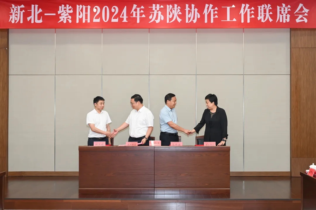 6月12日,新北-紫陽(yáng)2024年蘇陜協(xié)作工作聯(lián)席會(huì)召開。區(qū)黨工委書記、區(qū)委書記周慶,紫陽(yáng)縣縣長(zhǎng)王燊出席會(huì)議并講話。