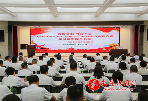 本網(wǎng)訊(通訊員 羅江 記者 吳單)7月1日,根據(jù)市政府黨組黨紀(jì)學(xué)習(xí)教育計劃安排,市委副書記、市長王浩為市屬國有企業(yè)領(lǐng)導(dǎo)干部講授“踔厲奮發(fā)、篤行不怠,為在中國式現(xiàn)代化道路上聚力建設(shè)幸福安康貢獻(xiàn)國資國企力量”專題黨課。副市長周孝斌主持。