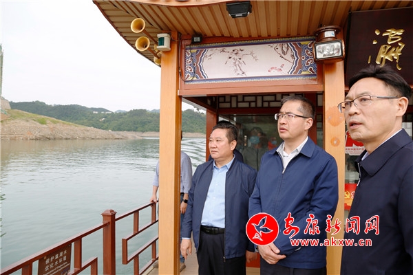 本網(wǎng)訊(記者 吳單)5月15日,代市長王浩在瀛湖生態(tài)旅游區(qū)檢查漢江水質(zhì)保護(hù)工作,調(diào)研文旅融合發(fā)展與重點(diǎn)景區(qū)建設(shè)情況。副市長周康成參加調(diào)研。王浩(右二)在瀛……