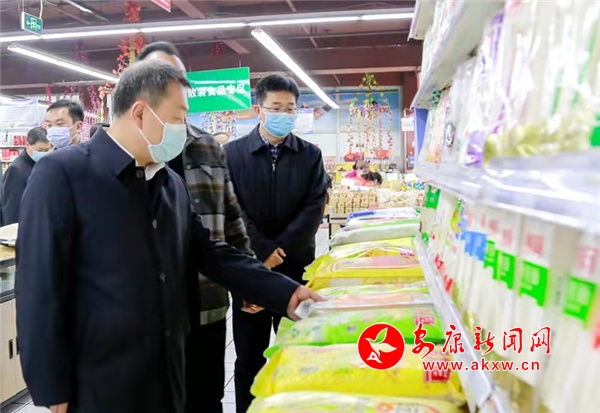 (市長(zhǎng)武文罡在喜盈門超市南環(huán)路店實(shí)地查看米面等生活必需品供應(yīng)情況)