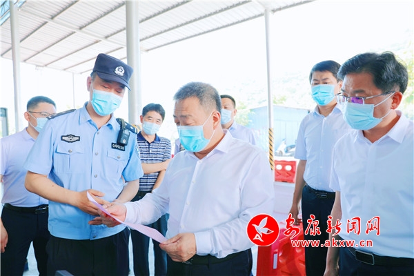 在城關(guān)鎮(zhèn)下卡子省際疫情防控卡點(diǎn),武文罡詳細(xì)了解防控流程、交通查驗(yàn)等情況,對(duì)堅(jiān)守一線的防疫人員表示慰問和感謝。他強(qiáng)調(diào),當(dāng)前我市疫情防控工作總體平穩(wěn),但國內(nèi)疫情形勢(shì)依然嚴(yán)峻復(fù)雜,要緊繃思想之弦,杜絕麻痹大意,加強(qiáng)值班值守,耐心細(xì)致做好來返人員掃碼登記、驗(yàn)碼測(cè)溫、48小時(shí)內(nèi)核酸檢測(cè)陰性證明查驗(yàn)、風(fēng)險(xiǎn)人員“點(diǎn)對(duì)點(diǎn)”轉(zhuǎn)運(yùn)等工作,堅(jiān)決守住外防輸入第一道關(guān)口。在下卡子省際水質(zhì)監(jiān)測(cè)站,武文罡強(qiáng)調(diào),要采取有力舉措加強(qiáng)流域綜合治理,強(qiáng)化源頭把控監(jiān)測(cè),確保出陜斷面水質(zhì)持續(xù)向好、穩(wěn)定達(dá)標(biāo)。