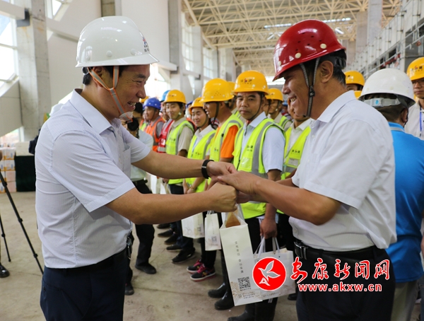 本網(wǎng)訊 (記者 艾蓓 陸青波)8月1日上午,市長、安康機(jī)場(chǎng)遷建工程聯(lián)合指揮部總指揮趙俊民調(diào)研機(jī)場(chǎng)遷建工程建設(shè)情況,看望慰問一線建設(shè)者。陜西建工集團(tuán)公司副總經(jīng)理?xiàng)詈I,西部機(jī)場(chǎng)集團(tuán)公司副總經(jīng)理?xiàng)钣论,市政府秘書長陳伍文參加調(diào)研慰問。