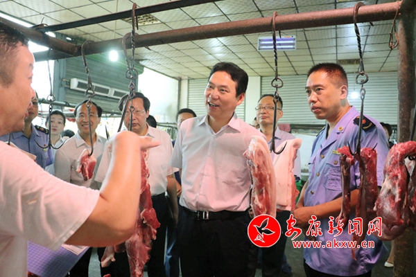 在喜盈門超市,趙俊民詳細詢問了解豬肉價格、供貨渠道、銷售量等情況。他強調(diào),要精心組織貨源,嚴格檢疫檢測,千方百計保障豬肉供應、穩(wěn)定價格,確保中秋、國慶期間市場穩(wěn)定和食品安全。