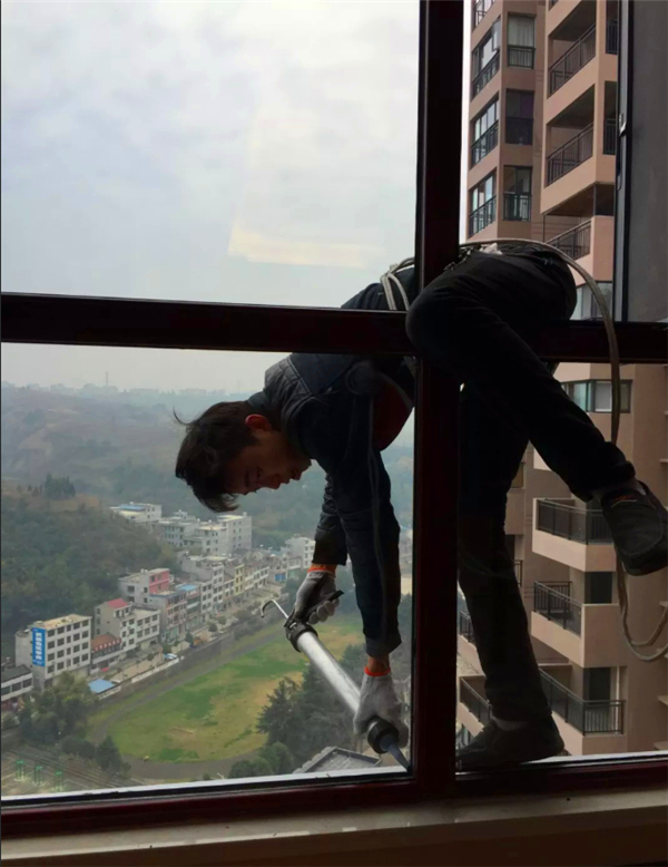 作品簡(jiǎn)介:蜘蛛人 2017年12月27日,一個(gè)寒冷的冬季里,窗戶玻璃安裝工人身懸七十多米高的窗戶外面封膠,體現(xiàn)了勞動(dòng)者的勤勞、智慧與膽量的獨(dú)特魅力!fAU安康新聞網(wǎng)