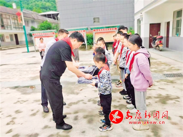 平利縣審計局聯(lián)合興隆鎮(zhèn)蒙溪街小學開展“六一”送關愛活動,為蒙溪街小學全體學生送去夏秋季校服。彭書梅 攝
