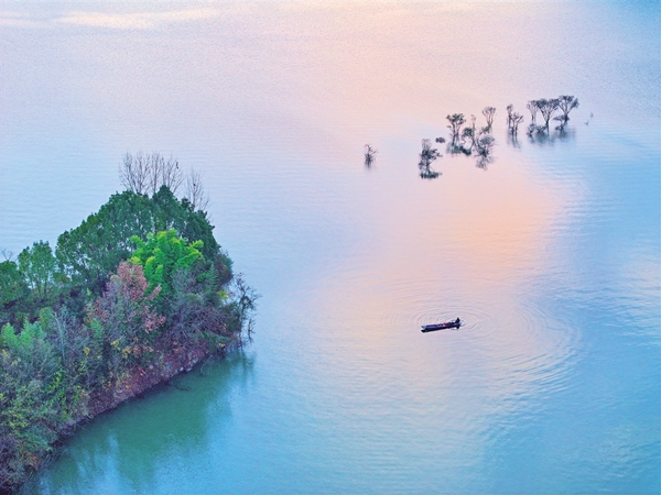 一葉輕舟,兩岸生輝。