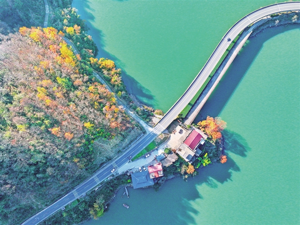 車和湖水同路,人與美景同行。