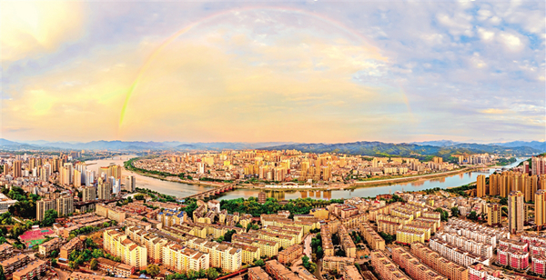 6月19日,我市中心城區(qū)迎來(lái)陣雨。雨后一彎彩虹為夏日里的城市增添一份靈動(dòng)。eNH安康新聞網(wǎng)