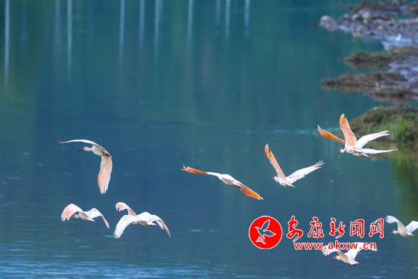 初秋的漢陰月河河畔到處都是一幅豐收的美景,微風(fēng)拂過稻田,稻穗悠揚(yáng),空氣中彌漫著泥土的清香,前來覓食的朱鹮,掠過人的頭頂,這樣的畫面隨處可見。月河是漢江一級支流,也是漢陰縣的母親河,因這里獨(dú)特的地理氣候和優(yōu)良的自然環(huán)境,使朱鹮有充足食物,為其繁衍生息創(chuàng)造了優(yōu)良條件,同時(shí)為了使巢區(qū)林木和濕地資源不受破壞,漢陰先后采取限制農(nóng)民使用農(nóng)藥、化肥,調(diào)整農(nóng)業(yè)產(chǎn)業(yè)結(jié)構(gòu),發(fā)展綠色無公害農(nóng)業(yè)種植等一系列措施,讓朱鹮安心落戶生活。(通訊員 王建霞 沈杰)