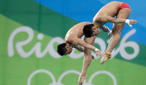 當(dāng)?shù)貢r(shí)間8月8日,在里約奧運(yùn)會(huì)男子雙人十米臺(tái)決賽中,中國(guó)組合林躍/陳艾森一路領(lǐng)先,以巨大優(yōu)勢(shì)奪冠,中國(guó)隊(duì)也實(shí)現(xiàn)該項(xiàng)目四連冠。中新網(wǎng)記者 杜洋 攝……