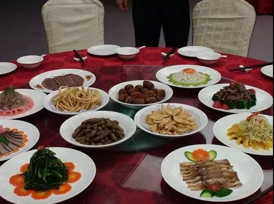 開(kāi)席便有八個(gè)涼菜,中間置一拌涼菜的大盤(pán),將涼菜適量放入中間空盤(pán),再將調(diào)好的拌菜汁子澆上,攪拌均勻便可食用,稱之為和菜。第一道熱菜均為湯,并大多為雞絲魷魚(yú)粉絲湯,此道菜香濃無(wú)比,為開(kāi)胃之湯。其他熱菜有蓮菜盒子、羊肉小炒、蘿卜燉羊肉、菜蔬小炒、干豇豆炒臘肉、漢江魚(yú)塊、雞蛋肉糕湯等等。八道菜品雖無(wú)魚(yú)鱉海怪、熊掌鹿鞭、天鵝大雁等稀世奇珍,但卻包含著一縷濃濃的家常氣息,反到更是余味繞梁,數(shù)日不絕。