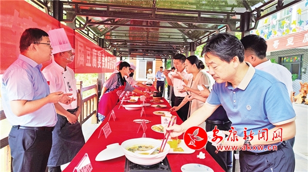 活動(dòng)現(xiàn)場(chǎng),壹品坊豆腐、王莽山莊、鄭家農(nóng)家樂、胡桃里農(nóng)莊、舒大嫂農(nóng)家樂、方氏豆腐坊、財(cái)哥豆腐宴等10家農(nóng)家樂帶來(lái)的37個(gè)美味的菜品一一呈上長(zhǎng)條桌,供現(xiàn)場(chǎng)參與人員品鑒。