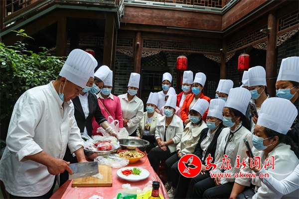 但隨著時(shí)代的發(fā)展,人們消費(fèi)理念的更新,能制作傳統(tǒng)白河“三點(diǎn)水”宴席的人越來越少,偌大一個(gè)縣,找不出幾個(gè)能夠獨(dú)當(dāng)一面制作傳統(tǒng)宴席白河“三點(diǎn)水”的廚師。所以他毅然決定辭去高薪的主廚工作,奔走于鄉(xiāng)村,上門做家政服務(wù),在實(shí)地操作技藝中傳幫帶一批會(huì)制作白河“三點(diǎn)水”宴席的鄉(xiāng)廚。