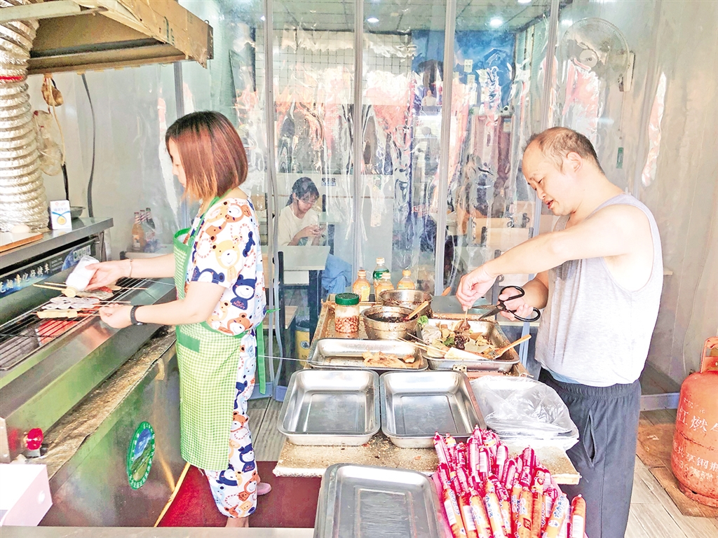 兩口子分工明確,潑辣干練的楊永華是“主烤官”,掌握著食材的火候;總是一臉笑容的盧付均是調(diào)味者,把控著成品的最后一道工序,決定著烤菜的口味。