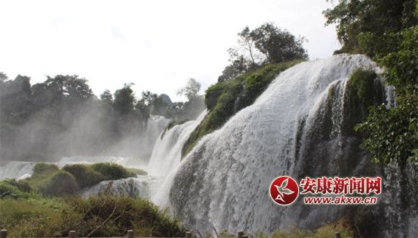 沿著河灘的花徑向前繼續(xù)走,將進(jìn)兩公里的二浪灘美麗如畫的青石山、綠水,更不堪說。沿途觀山越景也不知道累和餓。臺頭向前看,只見前面不遠(yuǎn)處一座鋃白色的漢江大橋向一條巨尤騰空而過在江面上。最讓人們不可思議的是漢江水面上突來一泓清流從大橋正中下穿流而過,在橋上形成寬闊的瀑流注入身邊這個大河。我們幾個任意沿橋兩邊,隨行人順臺梯而上,無論向哪個方向眺望,遠(yuǎn)山、近水、花木、房舍都自成一幅匠心獨運的山水畫卷。大家連連感嘆這世間竟有如此勾人魂魄的秘境。在仔細(xì)打量這座大橋,原來這就是石梯鎮(zhèn)新建的一座富民橋。橋正面,魏然屹立的政府大樓上空紅旗飄楊,標(biāo)志著石梯人民勤勞勇往向上的精神。
